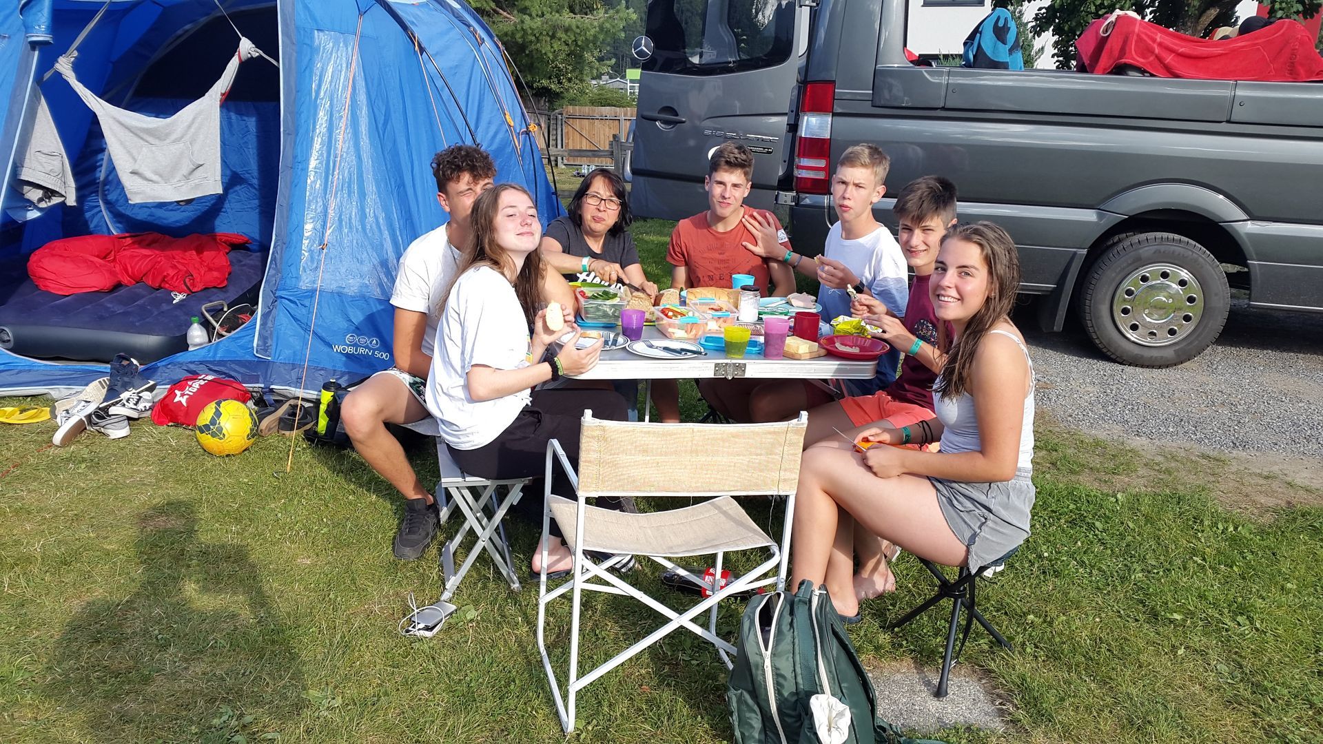 - Jeden Abend werden wir rechtzeitig auf einem Campingplatz sein: Zelt aufbauen, Znacht vorbereiten usw.